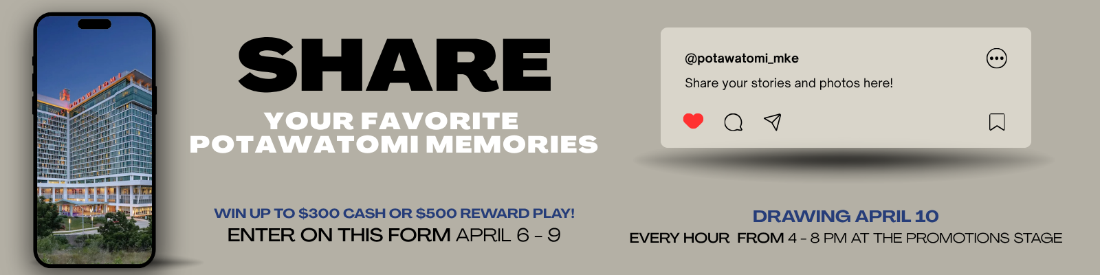 o Participants must pre-register through a web link provided in the social post or the page’s bio and share their favorite memory at Potawatomi Casino.