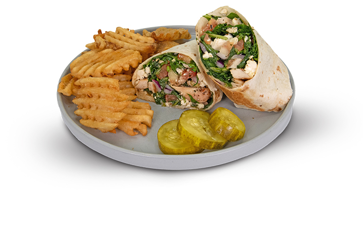 Seasoned grilled chicken, feta cheese, cucumbers, spinach, red onion, tomato, lemon oregano vinaigrette