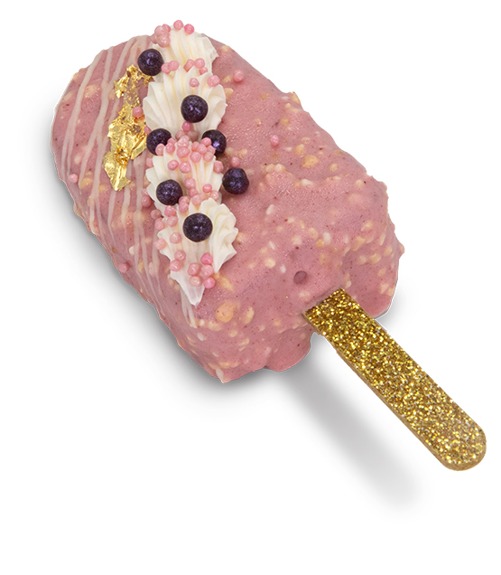 Strawberry cake with freeze dried strawberries, strawberry frosting, white chocolate strawberry crunchy coating