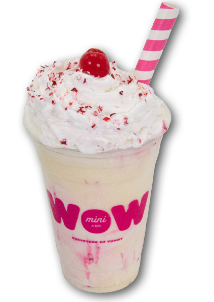 Peppermint, white chocolate, candy cane pieces, whipped cream, cherry