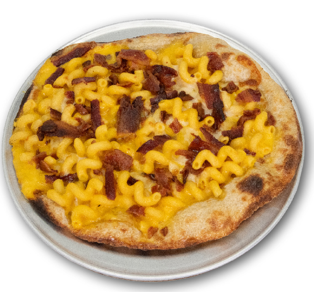 Three cheese sauce, mac & cheese, bacon, mozzarella cheese